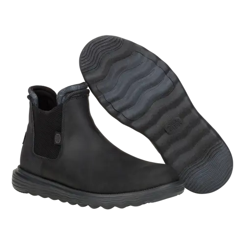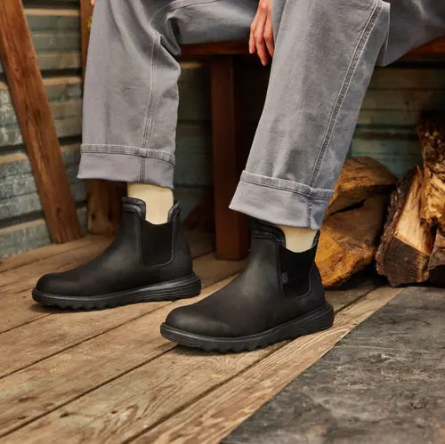 A classy boot for a classy dude. Branson Classic is in it to win it this season with a faux leather water repellent upper, lightweight flex outsole and rubber pods for added traction. Slip into classic HEYDUDE™ comfort and style.