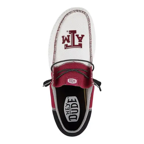 The Men's Wally Tri now screams school spirit! Show your support for the Texas A&M Aggies in style with a unique design featuring the iconic logo and bold team colors. Made with signature HEYDUDE™ comfort, lightweight materials, and a slip-on design, these are perfect for all-day wear to bring you and your crew from the tailgate to the game.