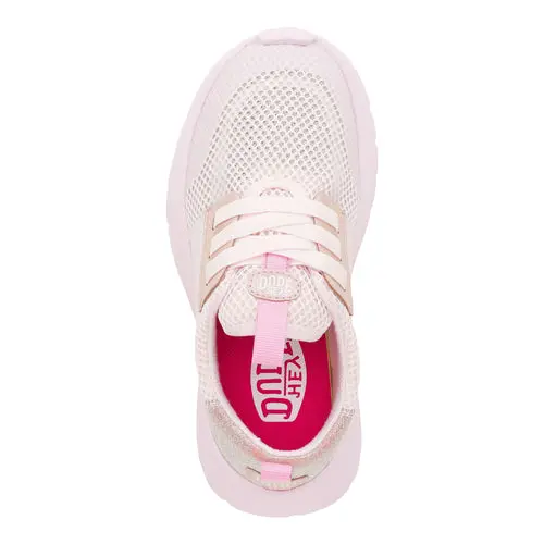 The Sirocco Play Youth Brights are recess-ready. Mesh upper, speckled midsole and “I-can-do-it-myself” color pop stretch lacing screams play all day. Dress up your playground attire in these bright, sparkly cool kicks.