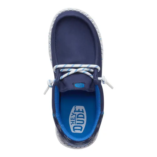 Easy to wear and effortlessly authentic, these Wally Funk shoes for kids bring the laid-back expression; kids just need to bring their feet. Made from twill with decorative woven fabric on the heel, these shoes are famous for their easy, step-in design and stretchy laces that don't need tying.