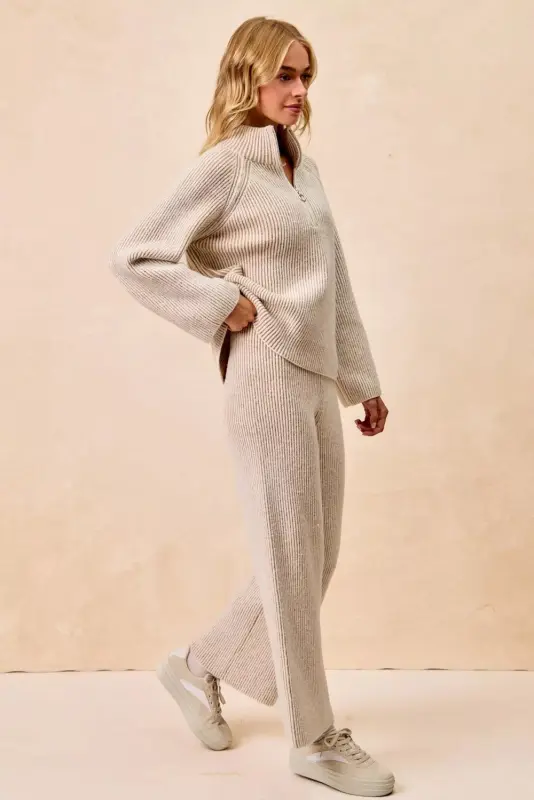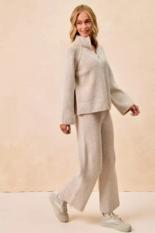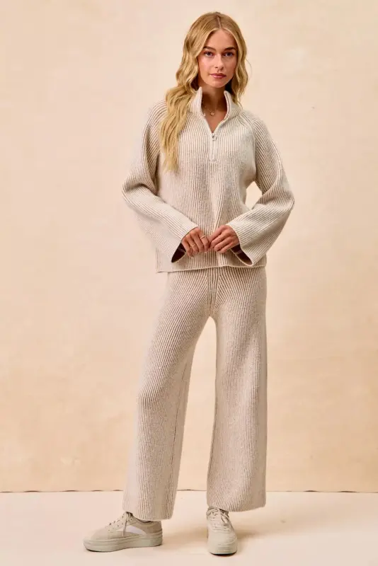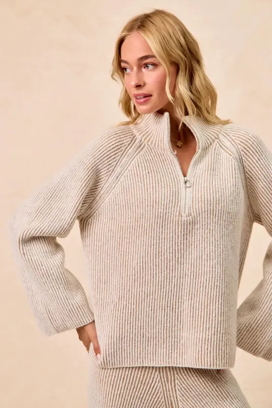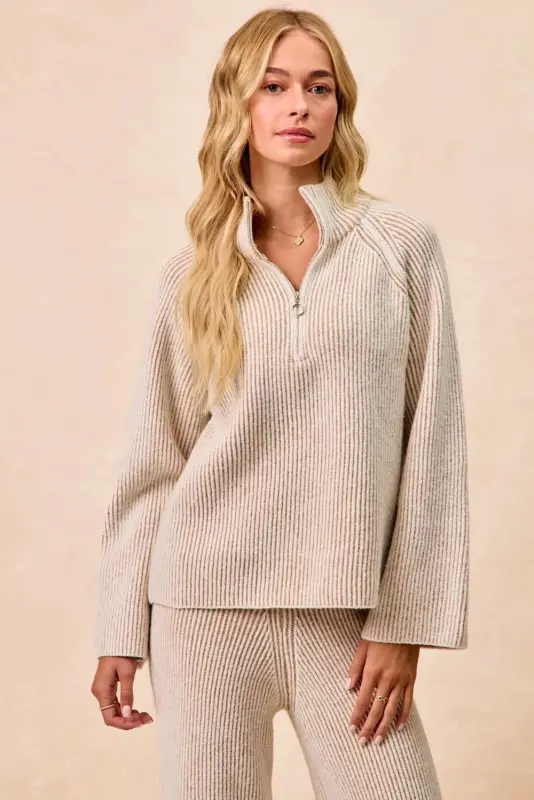 A versatile collared zip-up top with eye-catching two-tone ribbed texture. The soft knit fabric keeps you comfortable all day, while the modern zip detailing elevates any outfit. Perfect for pairing with your favorite bottoms for an effortlessly chic look.